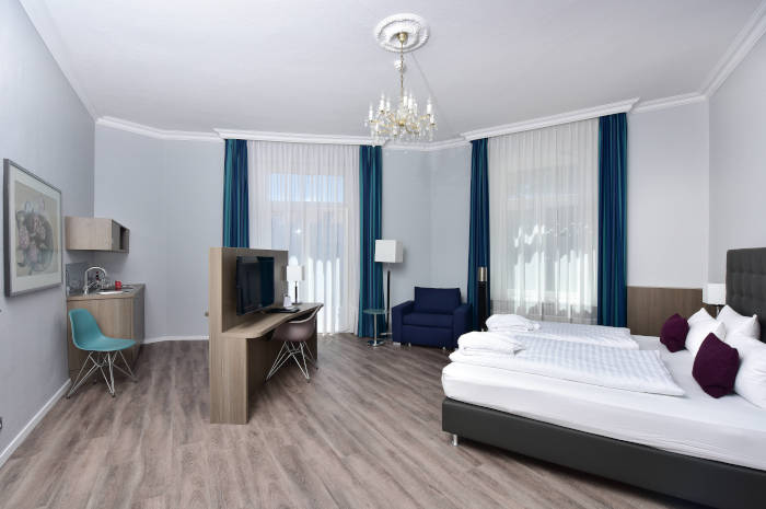Unsere Gäste genießen seit vier Generationen die freundliche und familiäre Atmosphäre unseres herrschaftlichen 3-Sterne-Hauses. In ruhiger Lage am Bankplatz in unmittelbarer Nähe zur Fußgängerzone warten auf Sie 55 Einzel- und Doppelzimmer. Genießen Sie Ihren Aufenthalt in individuell ausgestatteten Deluxe- und Komfort-Zimmern. Sie reisen mit Freunden oder der Familie? Wir bieten Ihnen gerne unsere Kombination zweier Deluxe-Zimmer für ihren Aufenthalt an. Abends entspannen Sie direkt im Haus im Szene-à-la-Carte-Restaurant „Vielharmonie“.